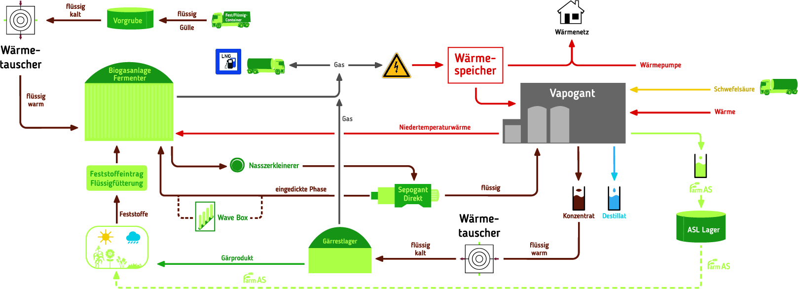 Die Landwirte den eingedickten Gärrest und Flüssigdünger mit dem gleichen Nährstoffverhältnis ihrer Lieferung zurück